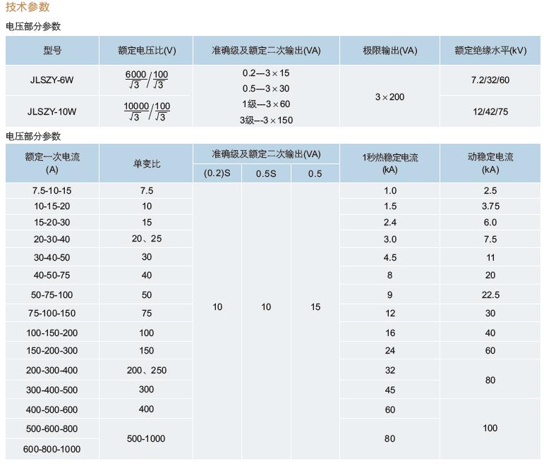 五、JLSZY-6W、JLSZY-10W戶外干式組合互感器變比參數