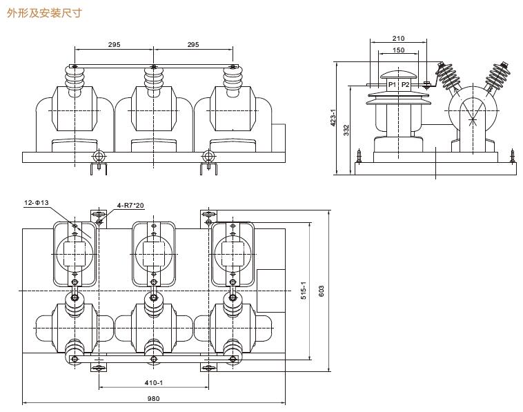 六、JLSZY-6W、JLSZY-10W戶外干式組合互感器尺寸
